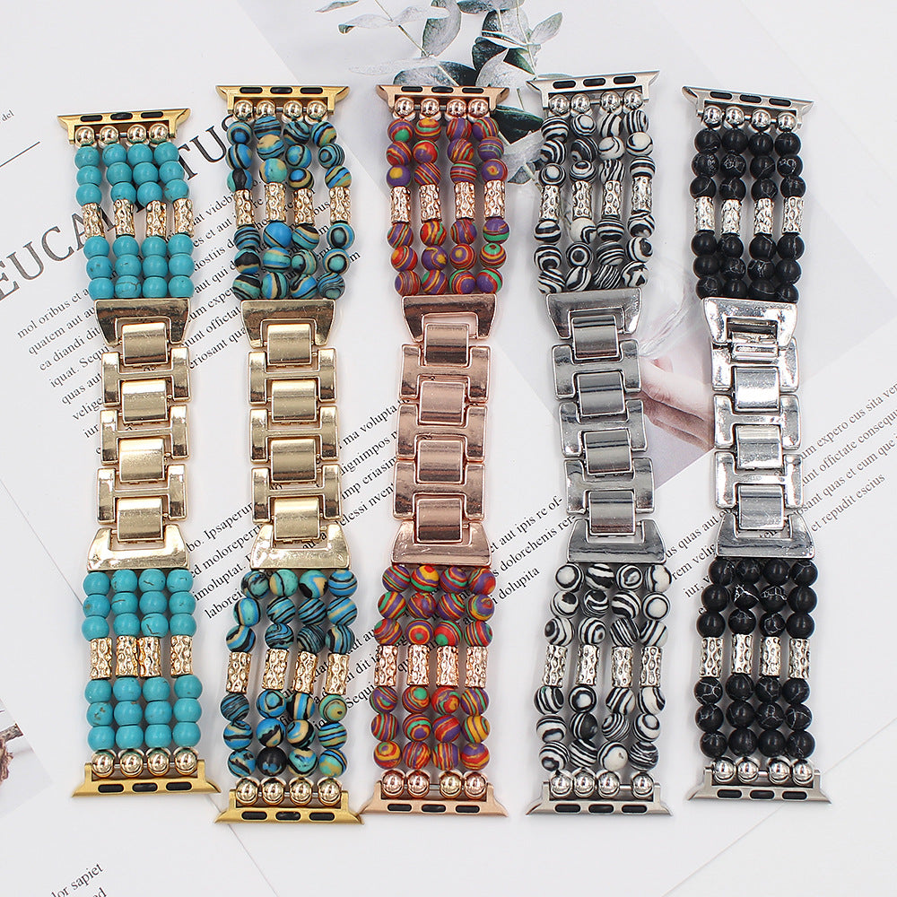 Pulseira extensível em pedra tingida com uma mistura de cores especialmente projetada para Apple Watch.