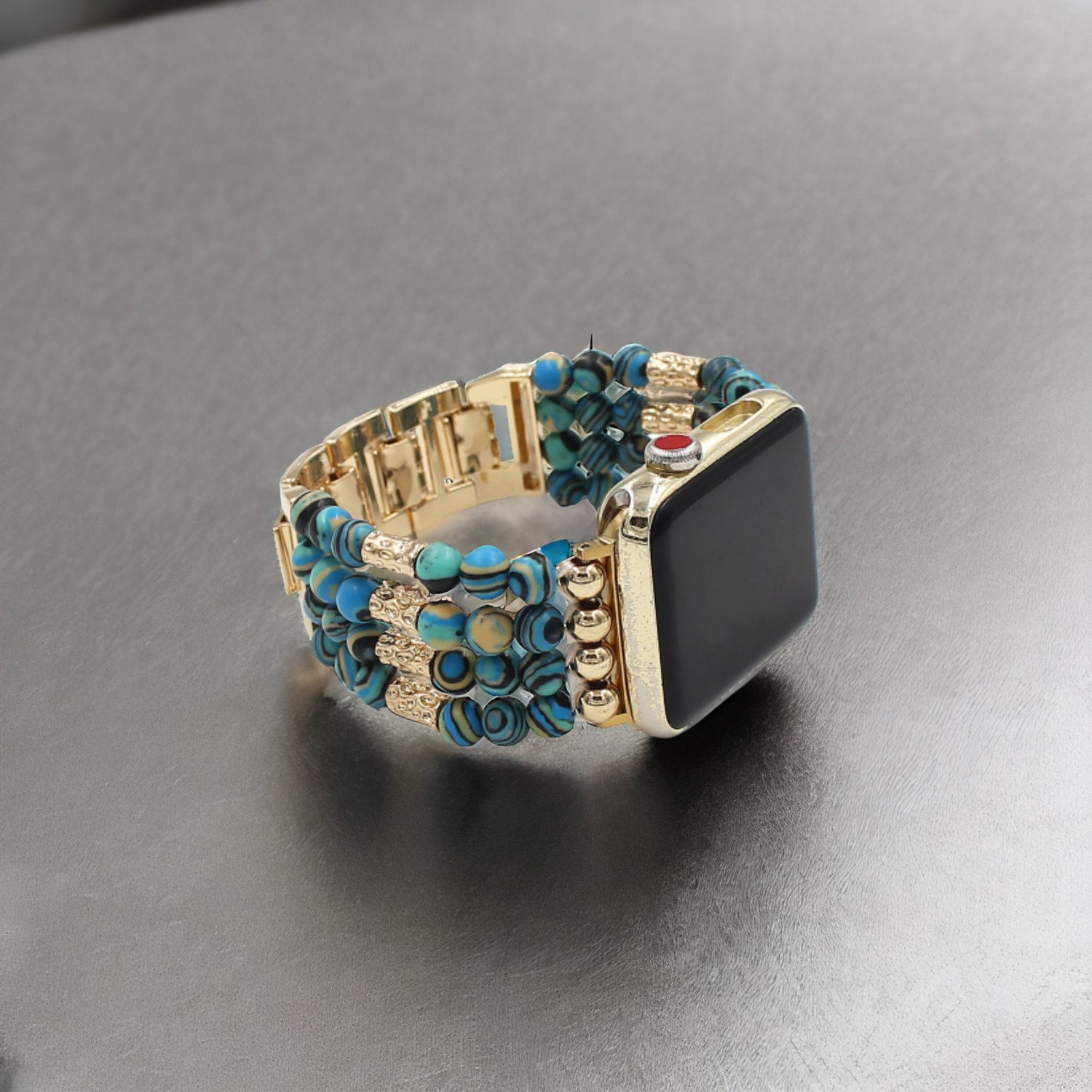 A Pulseira extensível em pedra tingida com uma mistura de cores para Apple Watch é um acessório elegante que acrescenta uma dimensão estética e um toque de estilo único.